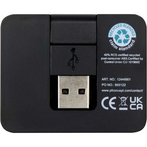 Gaia 4-port USB hub with USB-A and Type-C output and dual input - made from recycled plastic - EgotierPro 124449 - Solid Black