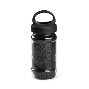 This practical set includes a 440 mL bottle and a cooling sports towel, perfect for your workout or outdoor activities. The bottle, made of PP and PET, features a convenient carry handle and a secure screw-on cap with a carrying loop. The towel, crafted from a blend of polyamide and polyester, provides a refreshing cool-down effect when wet – simply shake it to reactivate the cooling sensation. It's reusable and easily washable, adding to its practicality. The bottle neatly stores the towel, making this set an ideal on-the-go companion.